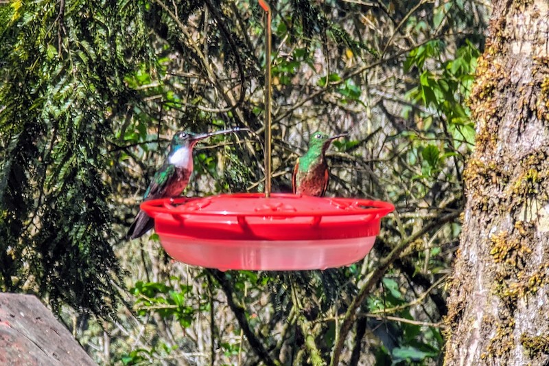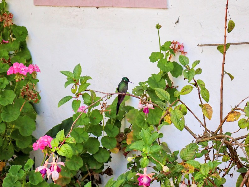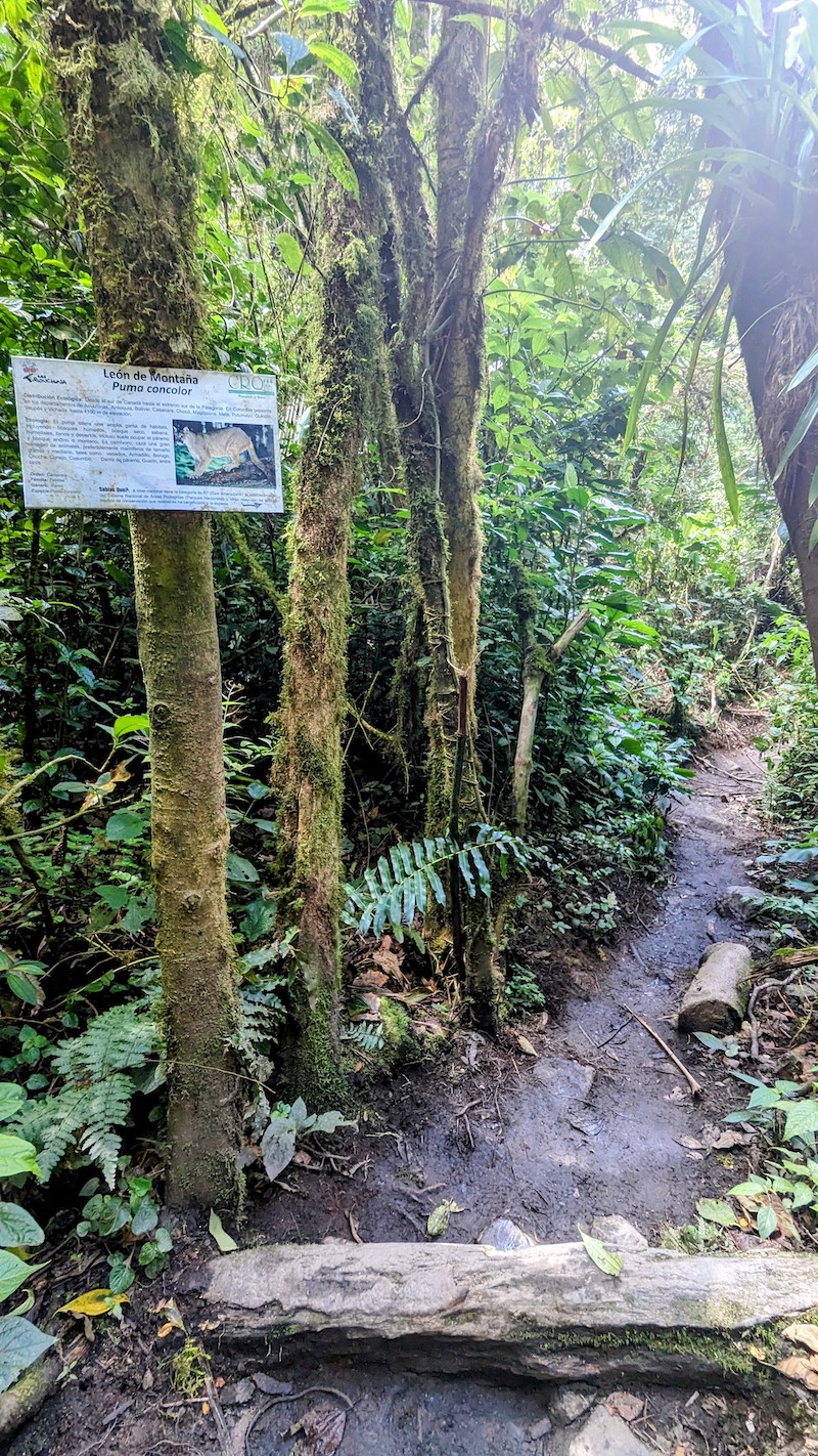 Je loopt een heel stuk naar beneden over rotsen met water en uiteindelijk kom je bij een T-splitsing (je kunt deze herkennen aan een bordje met een puma). Hier heb je twee opties. Je kunt linksaf naar Casa de los Colibris of je kunt rechtsaf om rechtstreeks richting de uitgang te gaan. De weg naar Casa de los Colibris is best steil omhoog en ongeveer een kilometer. De entree is 20.000 cop, waar je ook een gratis drankje voor krijgt. De kolibries hier zitten echter op voederhuisjes en zelf vond ik het veel leuker om ze te spotten op de bloemen bij Finca la Montaña. Ookal was het hier wel makkelijker om goede foto’s van ze te maken.